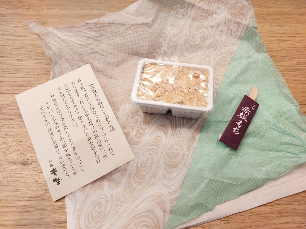 Akasaka-Mochi is apparently gifted as a thank-you or sorry gift among celebrities as it’s both classy and tasty – but it’s very affordable at under 250yen (<A$2.50) each. The displays had a set of 5 (also wrapped in a cute furoshiki style packaging) but I was able to ask for an individual one too.