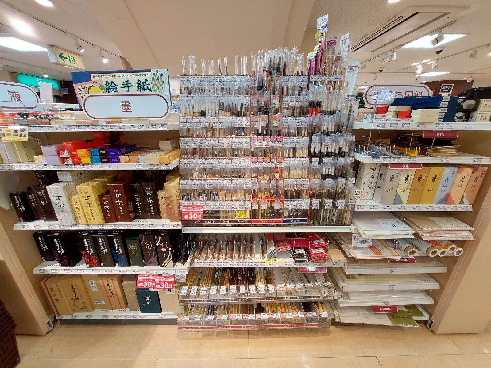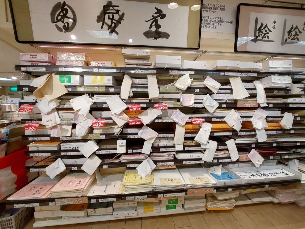 As for Japanese washi paper, they have a wall full of paper types and samples; I’ve seen people rip them off so I assume you can take samples home to test out before you buy them.