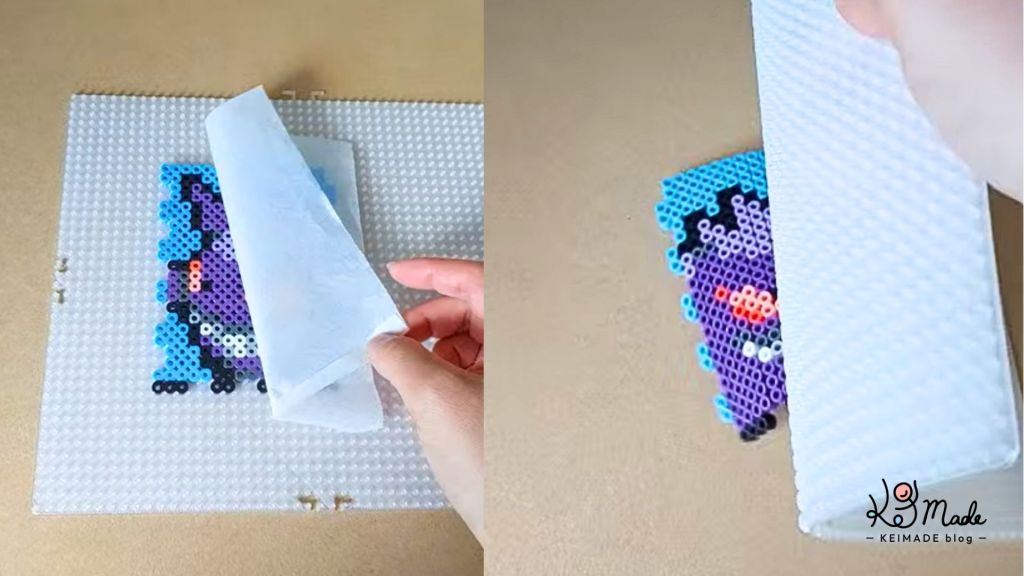 The transparent Perler pegboards tend to be slightly curved or warped by default, which causes the beads to not fuse together properly. While you can use the masking tape method and remove your design before fusing, isn’t it strange that you need to do that?