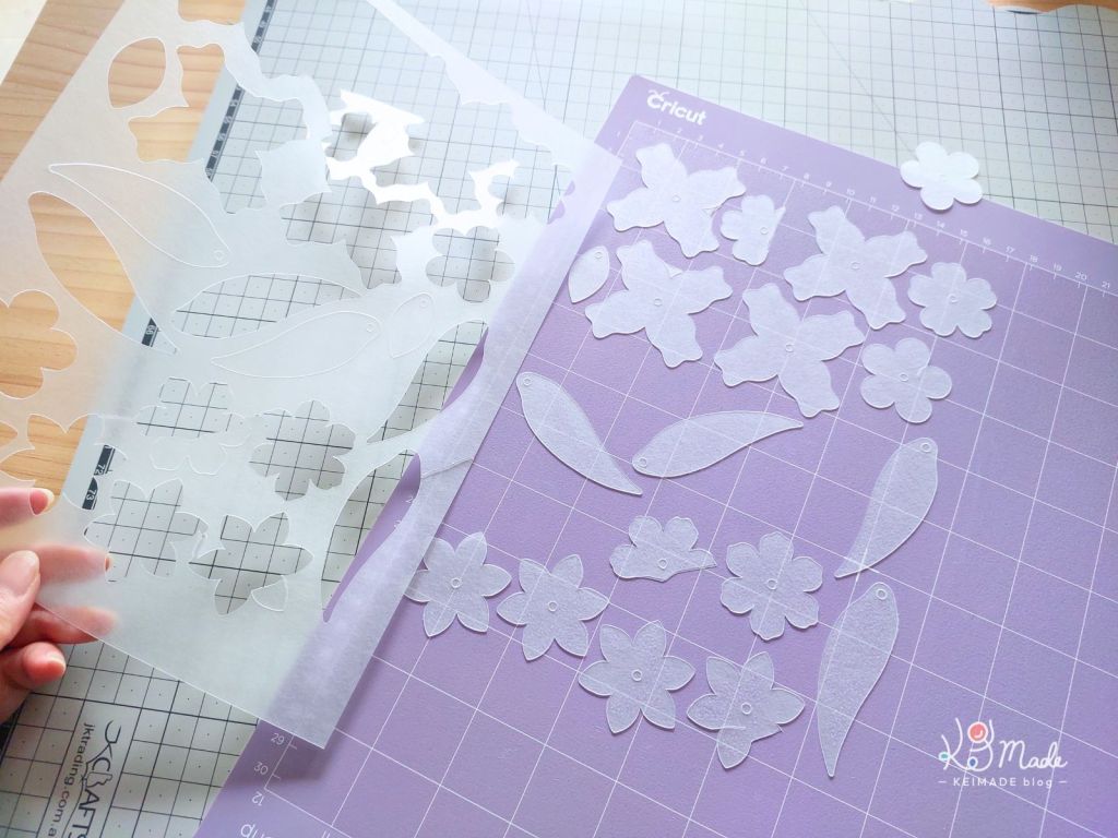 Peel the cutouts from the mat. If some are left on the weeded piece, push to snap them out too.