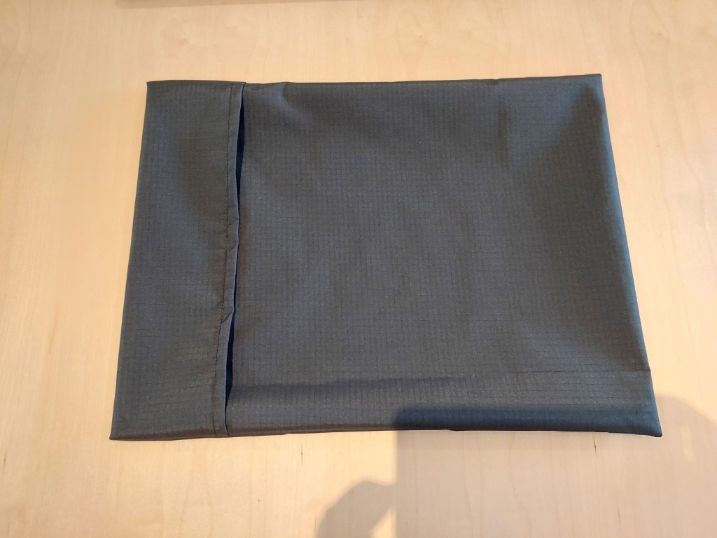 Rip-stop waterproof fabric was cut out at 90cm x 32cm. (Slightly wider this time to accommodate an outer flap.)
