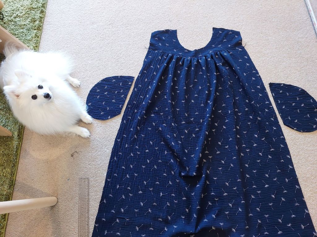 Then, open it up and serge the sleeves onto the yoke and top parts of the skirt.