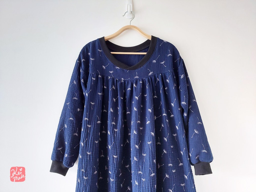 Try the dress on to finalise its length. Hem hem the bottom with a cover stitch or overlock + lock stitch.