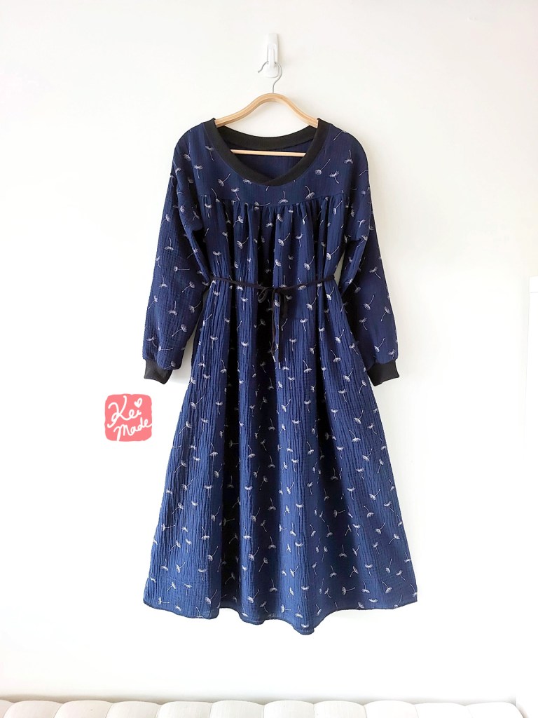 This is a slight variation to my v-neck midi dress with long puff sleeves and gathered yoke. It has pockets too!