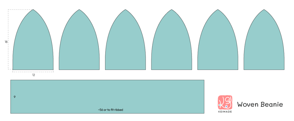 To make it to your size, make the bottom brim/band rectangle 10cm x desired circumference + 2cm.
