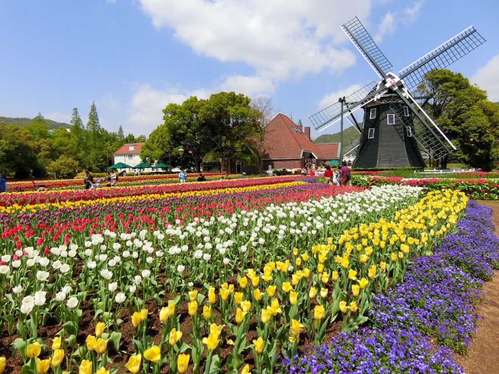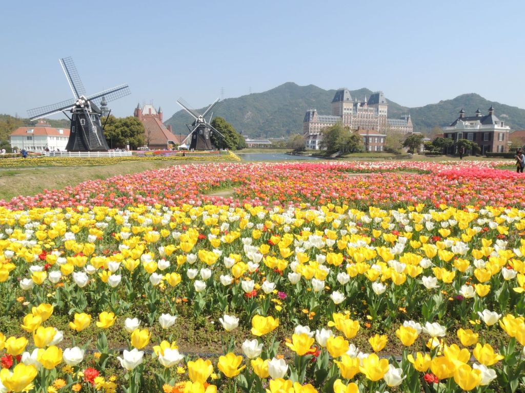 Huis Ten Bosch is my favourite theme park in Japan. Tucked away in Nagasaki prefecture, it’s a massive park that recreates the look and feel of a Dutch town — complete with canals, windmills, tulip gardens, Dutch-style buildings and landmarks like the Dom Tower, and even a palace.