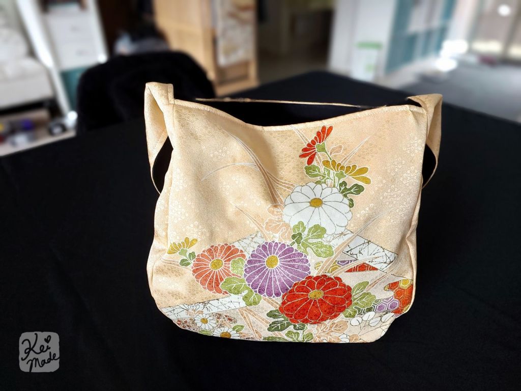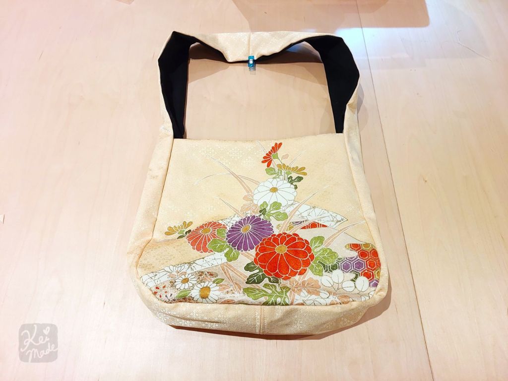 After turning the hem of a coffee-stained silk kimono into a skirt, I decided to upcycle the leftover sleeve into a shoulder bag. Here’s the pattern, materials used, and steps followed.