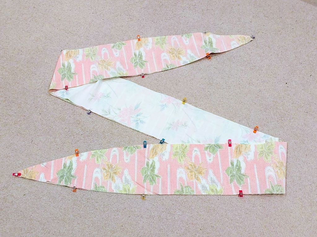 Last year I made a reversible Obi from two vintage kimonos. This time I decided to upcycle the remaining halves of the kimonos, to make a more casual sash for pairing with a Yukata.