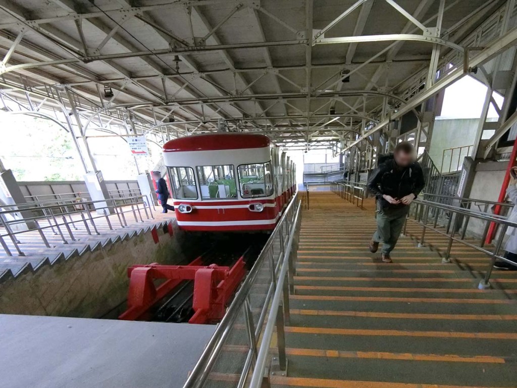 The cable car is pretty distinct looking with its super diagonal lean. You can use the normal train IC card to get on the cable car; no special ticket required. The return cable car from Koyasan runs until 9.40pm, so you could have a day trip to Koyasan.
