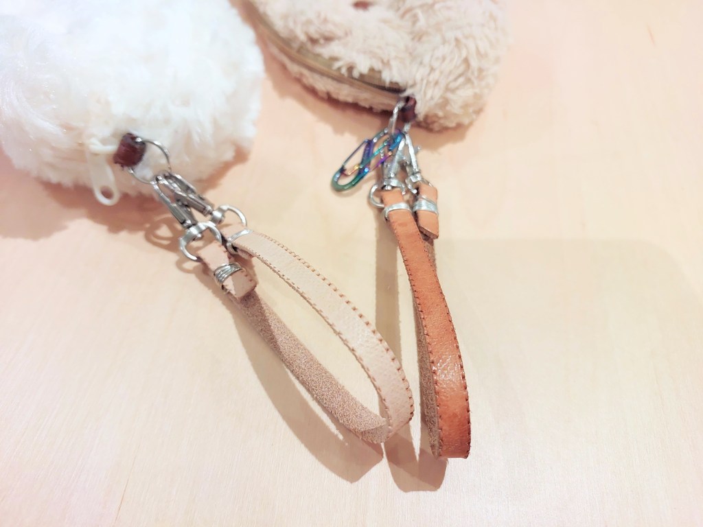 I attached it to my smart phone pouch, and they haven’t fallen apart after using it for six months 😀 (The light beige leather has become darker brown from use 🤣)