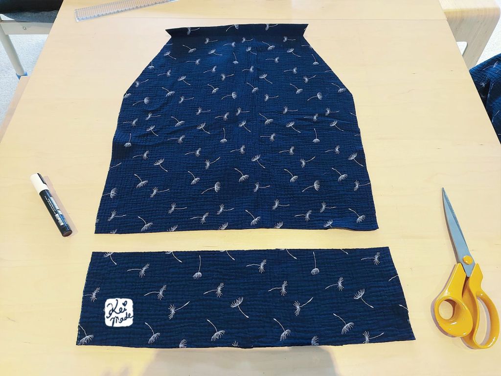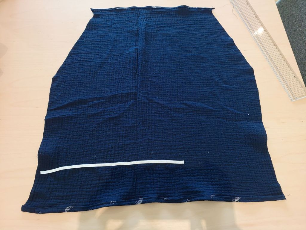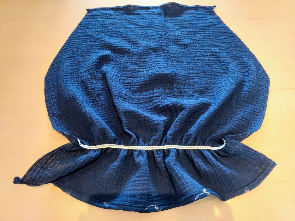 This fabric was tricky to serge as a singular piece, so the top edges of the 4 pieces of fabric were folded over by 5mm and sewn in preparation for an elastic casing later.