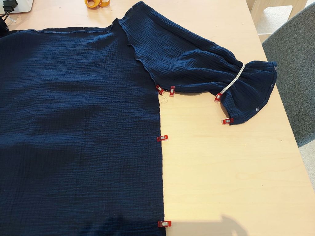 For the sleeves this time, I kept the extra 12cm that was cut off the bottom, just in case I want to add it back on later to make this blouse long sleeves.