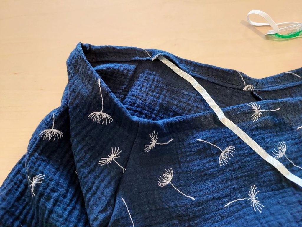About 90cm elastic was inserted through the gap; the knot placement was adjusted while trying it on.