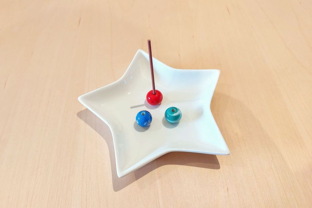 The beads turned out a little smaller than I expected, so they weren’t quite the right size to turn into a kanzashi this time. Instead, I ended up using them as incense holders — and they work perfectly.